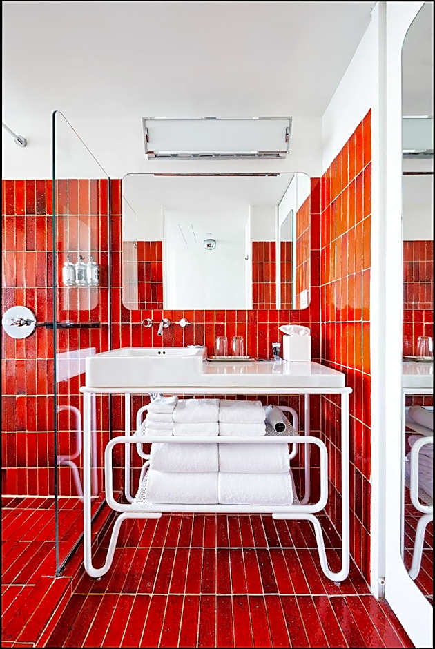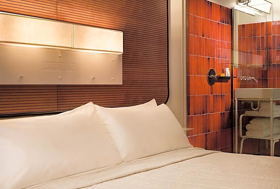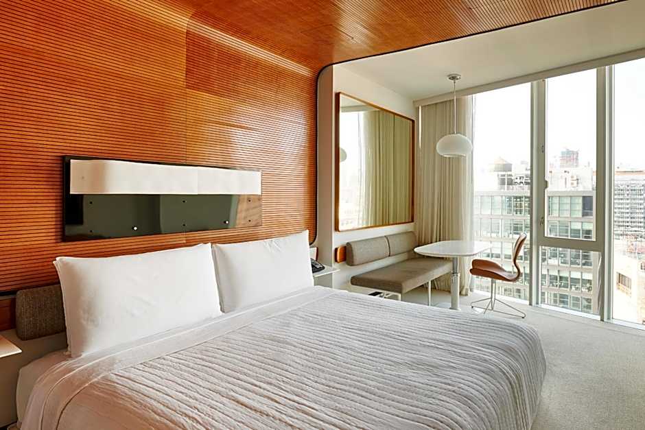 This room located on floors 11-17 offers views of the city. There is a king-size bed, working/eating/relaxing alcove, a full wall of floor-to-ceiling windows, and a rain shower with natural light and a sight-line onto the city. Cozy hooded robes, a Bluetooth speaker, and an overstocked mini-bar, come standard, naturally. Some rooms have a bath tub.